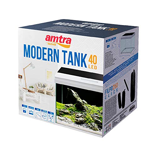 Specification: AMTRA MODERN TANK 40 LED / Acquario completo di illuminazione LED e filtro interno / cm 42,5×23,5×36,5 / 28 Litri