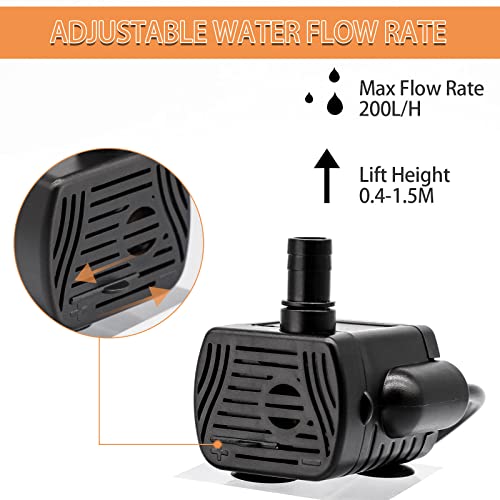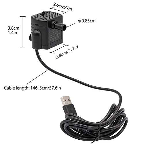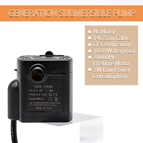 Specification: KYYKA Mini pompa dell’acqua USB piccola 200L/H Pompa sommergibile Pompa per fontana per laghetto Pompa per acquario per fontana per laghetto 3.5-9V 1-3W Cavo 1.4m (4 ventose aggiornate)
