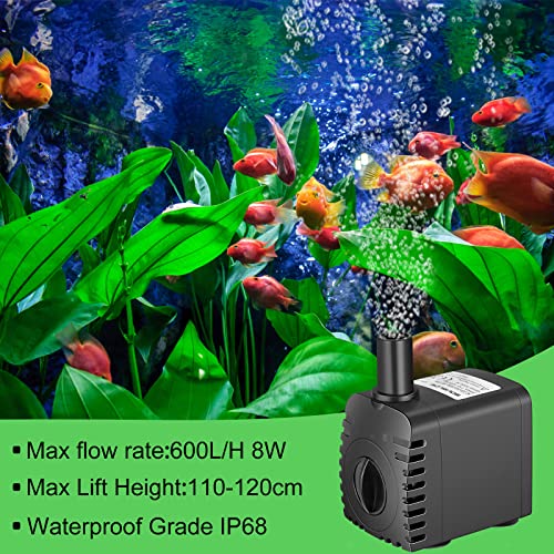 SOUSLOW 8 W Pompa dell’acqua sommergibile 600 L/H AC220-240 V con 2 ugelli per acquario acquario laghetto fontane giardino sistema